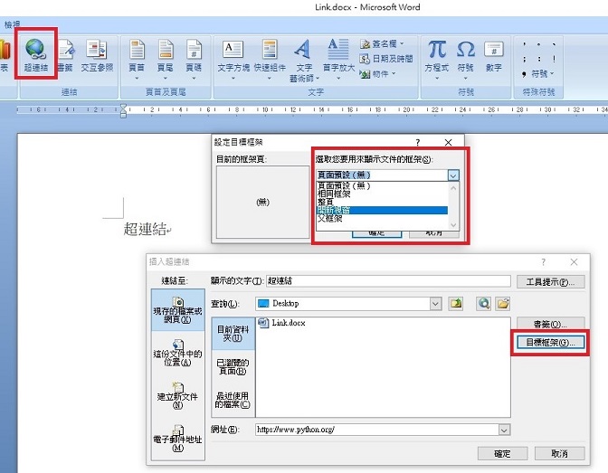 如何設定 Word 超連結的目標視窗 (How to set Word hyperlink target)