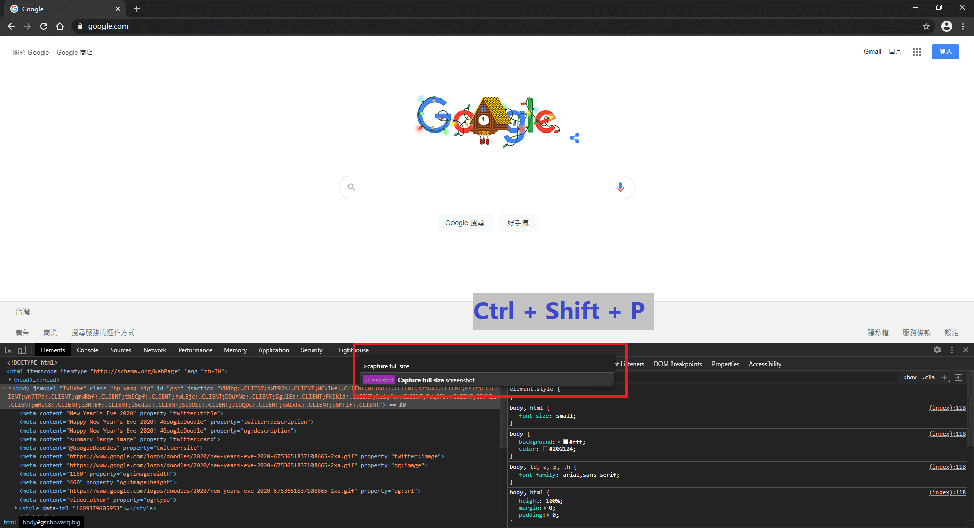 使用網頁瀏覽器進行網頁全頁面截圖 (Capture Fullsize Screenshot with Browser)