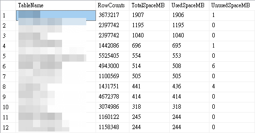 顯示單一資料庫的所有索引,包含名稱及碎片化程度以及分頁數量