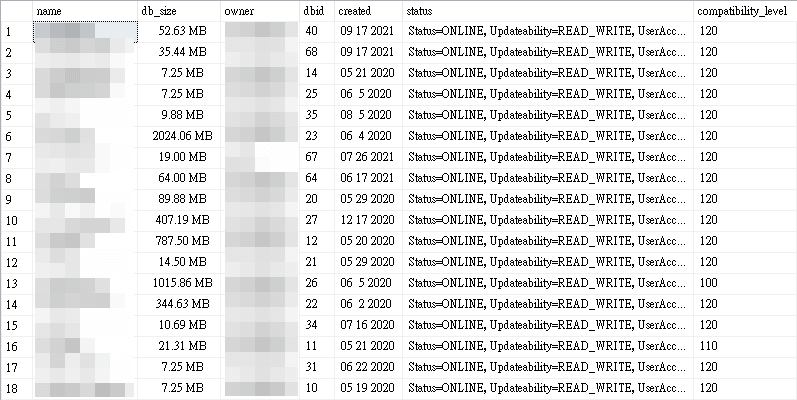 sp_who 基本查詢,主要用於判別 hostname, dbname 等資訊。