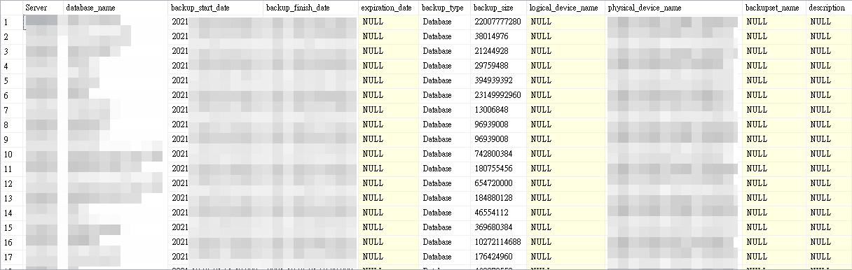 檢查備份裝置 (Backup Device) / DISK 中備份組 (Backup Set) 的詳細資訊