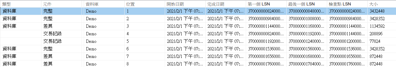 資料庫 > 工作 > 備份 > 內容 (顯示裝置內容)