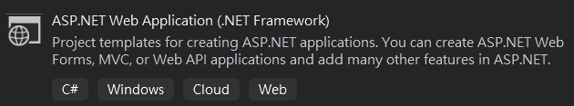 專案的類型選擇:ASP.NET Web Application(.NET Framework)