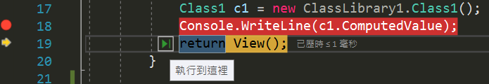 可以設置多個中斷點,並且使用 Continue, 繼續(F5) 的按鈕來前往下一個中斷點。