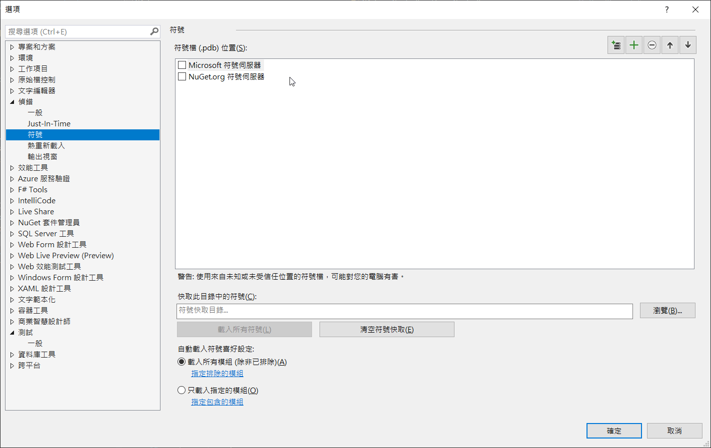 在專案編譯的過程,會產生 DLL 與 PDB 檔,其中 PDB 檔,也稱為 Symbol Files 是用於連結 Source Code 與 Compiled Code,所以藉由 PDB 檔才能夠 Debug Code。而從 Nuget 等下載的專案,僅有 DLL 檔案,因此沒有辦法 Debug,但如果 Nuget Package 開發者由提供 PDB 檔在相關服務上(例如 GitHub),藉由 Source 的設定就可以讓 Visual Studio 自行從 GitHub 取回該專案的 Symbol Files。