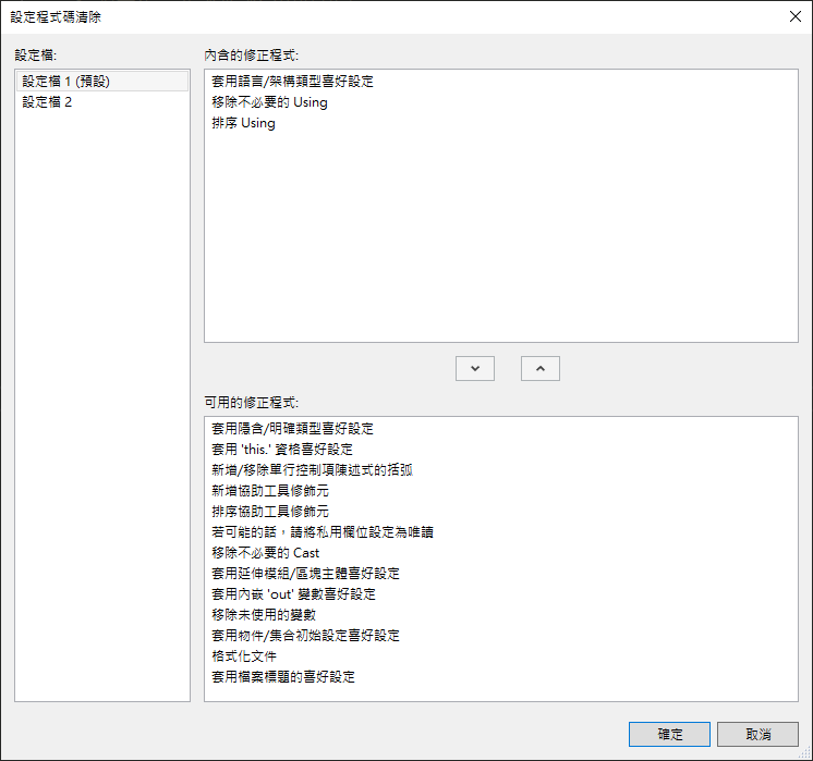 執行程式碼清除可以自動為檔案中的程式碼套入一致的程式碼規範,例如移除不必要的 Using、自動為流程控制加入括號等,非常方便。