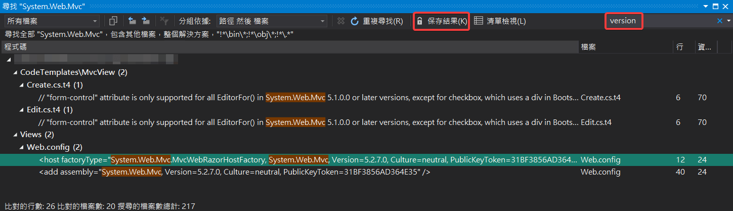 搜尋的結果只要點選就可以開啟檔案瀏覽,同時也可以在搜尋結果中再次篩選,而搜尋的結果也可以保存在頁籤上,如此一來再次執行搜尋與取代就不會關閉原本的搜尋。