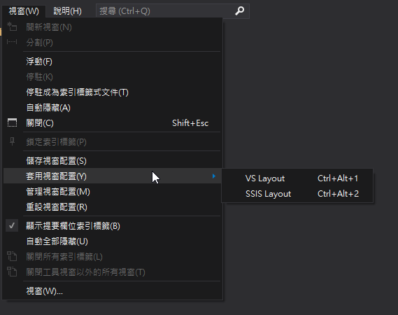 Visual Studio 可以將視窗的配置保存,因應不同的開發情境使用相對的視窗配置。