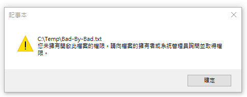 如果不具有權限的使用者嘗試存取檔案,會出現下列錯誤訊息: