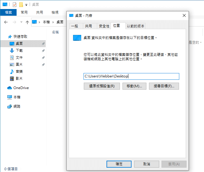 而要恢復方法是另外建立一個桌面資料夾,並調整快速存取中桌面的位置來處理。