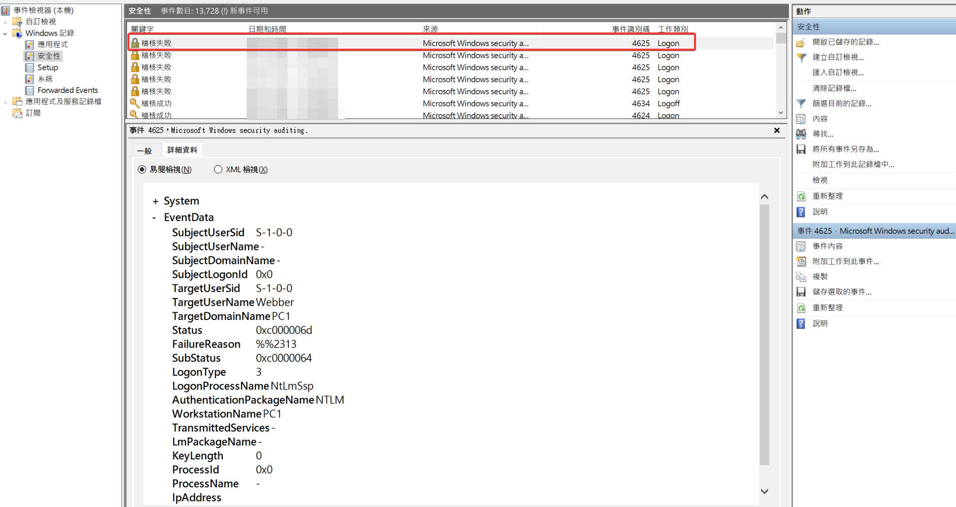 Windows 事件檢視器 安全性事件 Event ID 4625 (Eventvwr)
