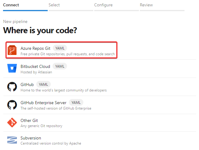 首先設定原始碼的來源,本次以 Azure DevOps 為例
