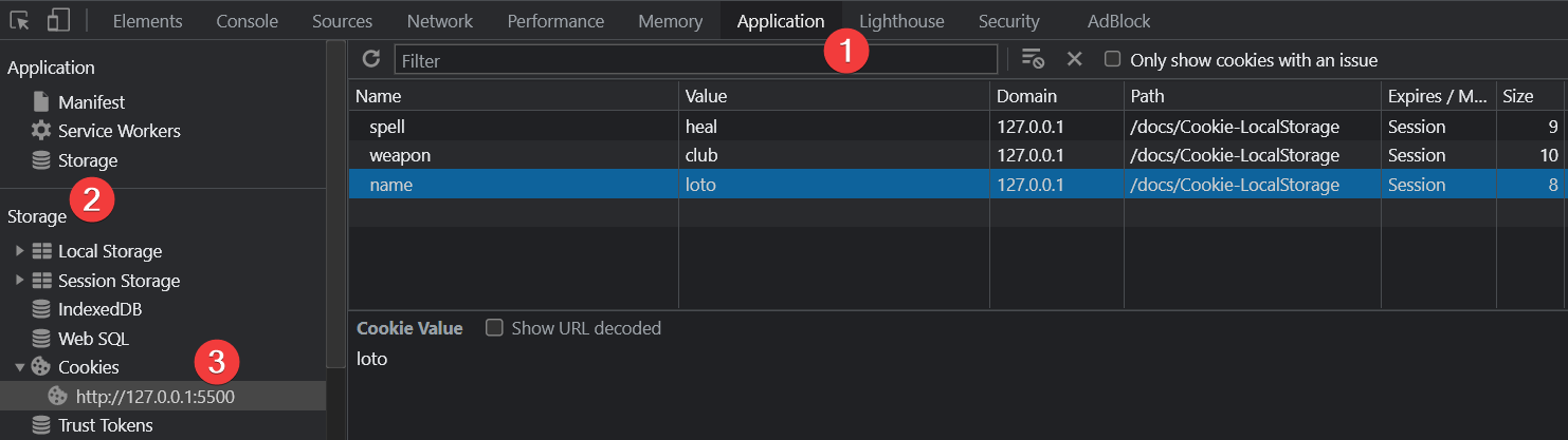 建立的 cookie 可以從 Chrome devTools 檢視:
