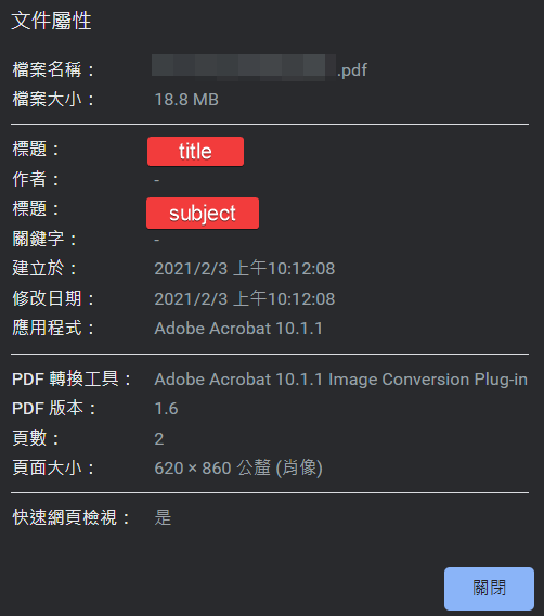 讀取 PDF 文件屬性