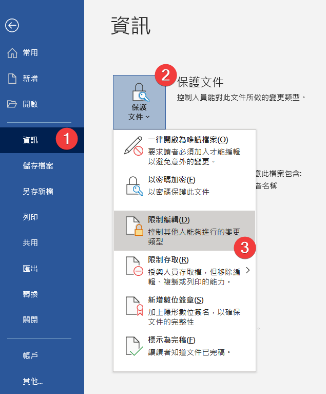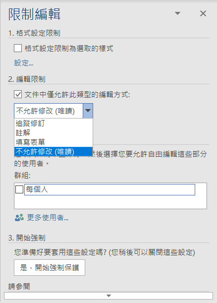 Word 使用密碼保護文件 限制只能閱讀、追蹤修改的方式