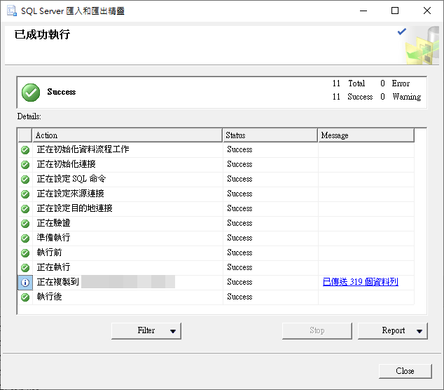 成功後即可於 SQL Server 驗證目的端的資料是否與來源端一致。