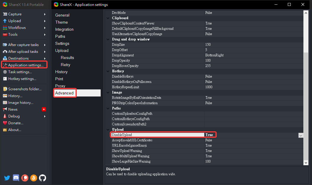 而預設上 ShareX 會將圖片自動進行上傳,這個功能使用不到的話可以下列方式進行關閉: