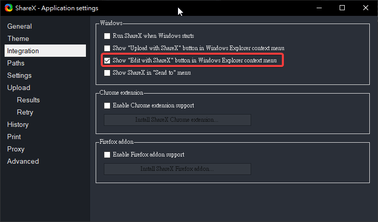 另如果希望圖片直接右鍵清單使用 ShareX 的編輯工具,可以調整該項設定