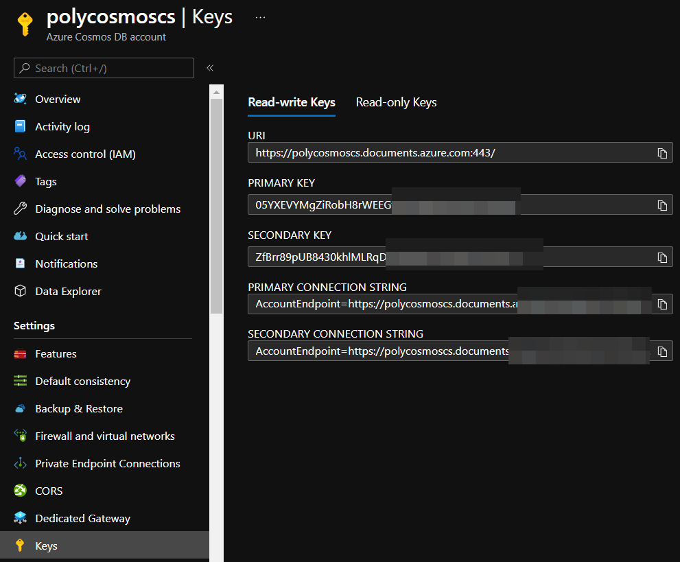 "AdventureWorksCosmosContext": "AccountEndpoint=https://polycosmoscs.documents.azure.com:443/;..."