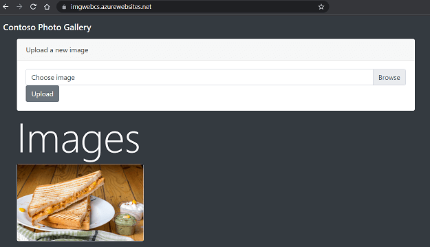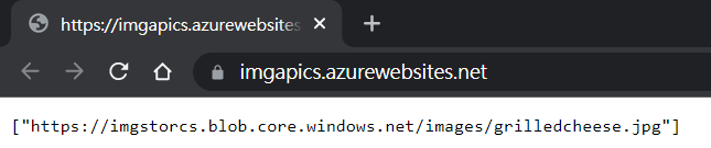部署完成後,再次瀏覽可以看到目前 Web App API 就是將 Storage Container 當中的 Blod Images 以陣列的方式將 Imgeas URL 回應。