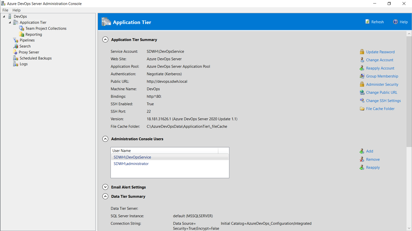 在 DevOps 安裝的過程,會建立 AzureDevOps_Configuration 資料庫,用於保存 DevOps 的組態設定。