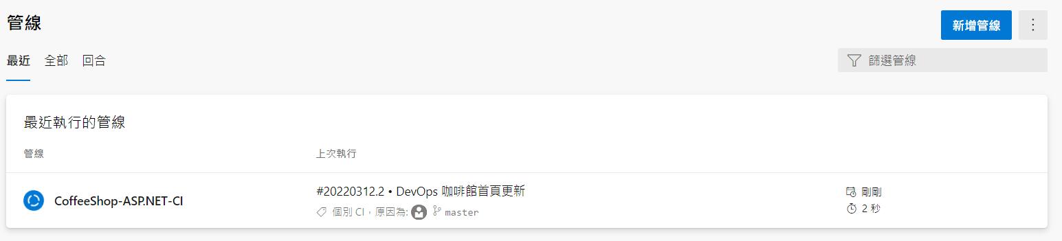 從 CI Pipeline 的資訊,我們可以發現 CI 作業隨著收到最新的 Commit 已經開始自動工作了