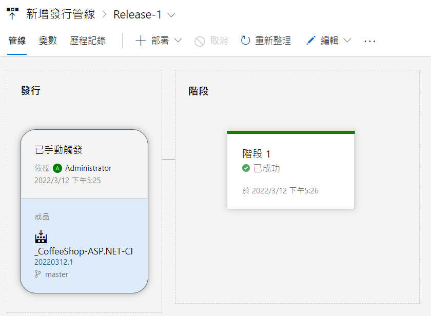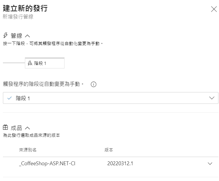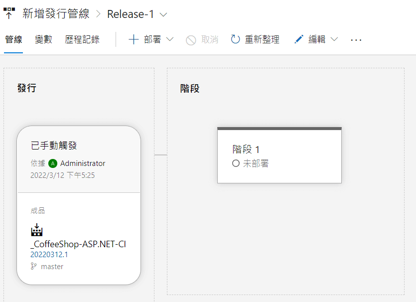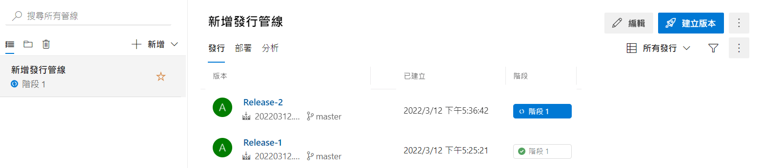 建立好發行管線後,還需要建立發行 (Release) 才能夠進行部署。