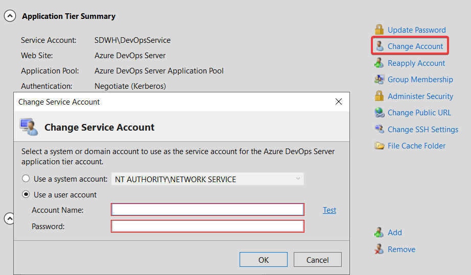 首先要先到 Active Directory 建立服務帳戶,提供 Azude DevOps 安裝的過程以及連線資料庫所使用。