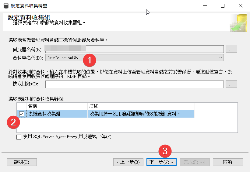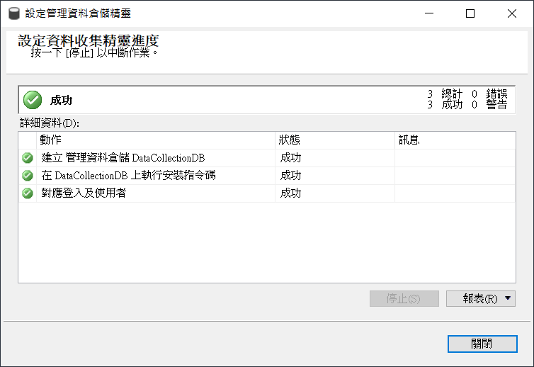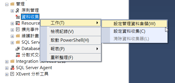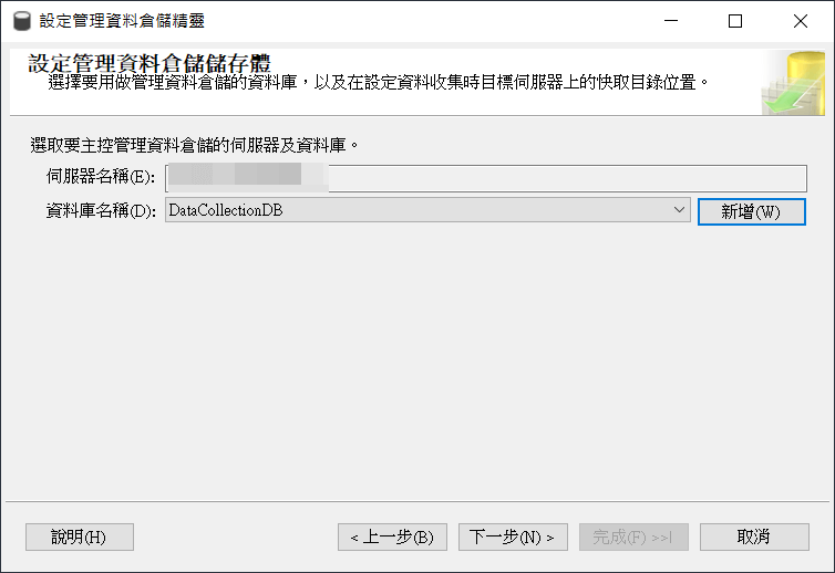 首先進行管理資料倉儲的設定,這邊會需要一個資料庫用於保存資料蒐集器的資料。