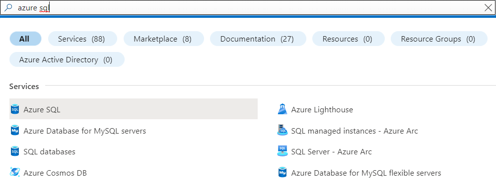 首先要前往 Azure Portal,並且在搜尋列查詢 AZURE SQL。