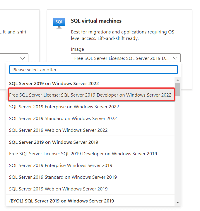 可以使用 Serverless 的 SQL Databases 或者是 PaaS 的 SQL Managed Instances,但這兩種解決方案費用上都納入了 SQL Server 的 License。對於只是要做 POC 的開發人員而言,無法使用到 SQL Server Developer 版本免費的好處 🤨