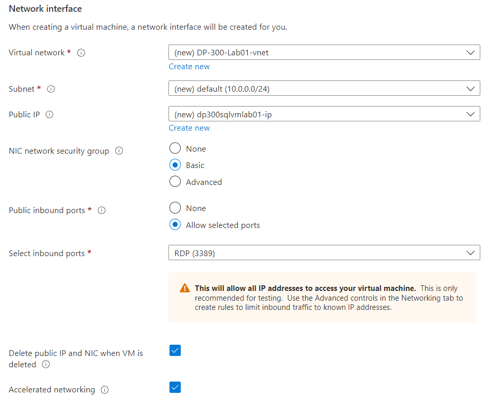 在網路的設定部分,我們需要允許 3389 Port,待會才能以 RDP 的方式遠端桌面連線至 VM 上。