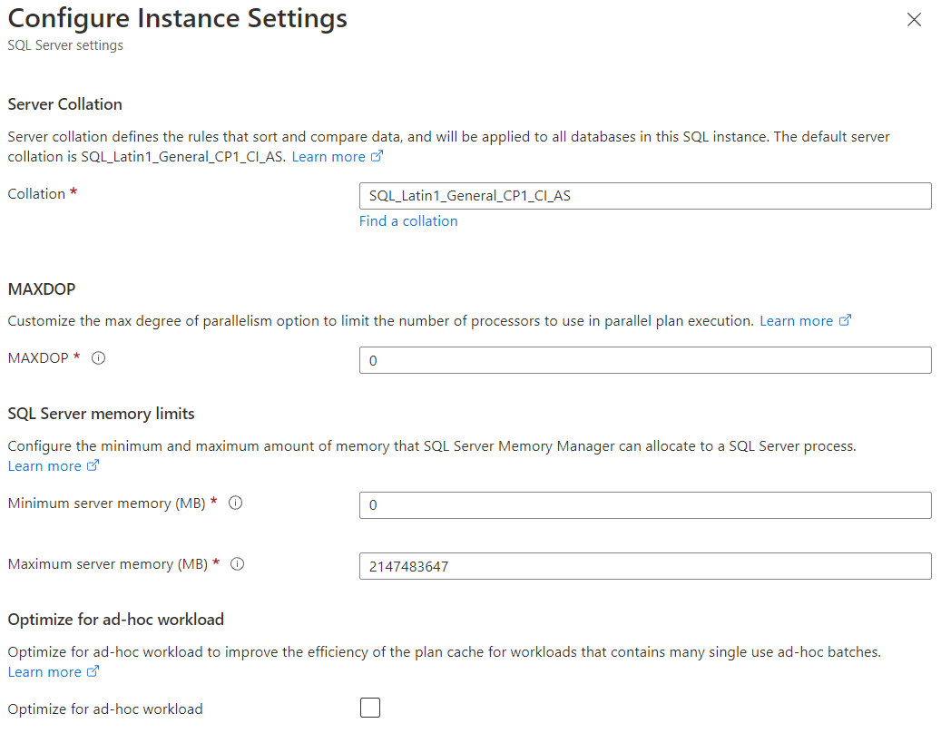 也可以對 SQL Server Instance 進行 Collation 定序、MAXDOP 以及 Memory 的設定。