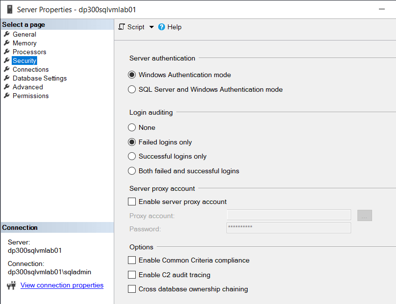 連線成功後,首先讓我們來確認一下 Azure VM 上的 SQL Server Configuration。