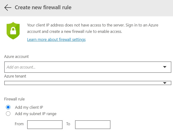 首次連線,系統會提示是否要將 Client IP 加入 SQL Server,這邊會進行 Azure Portal 的驗證,避免所有人都可以任意連線至 Azure SQL Database。