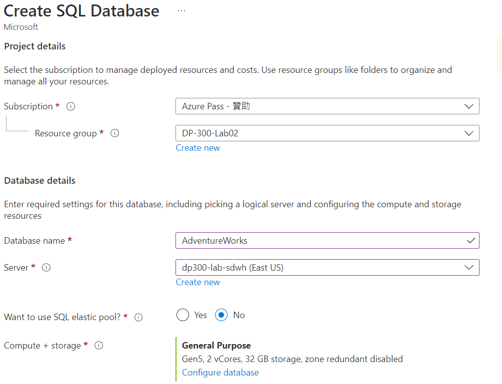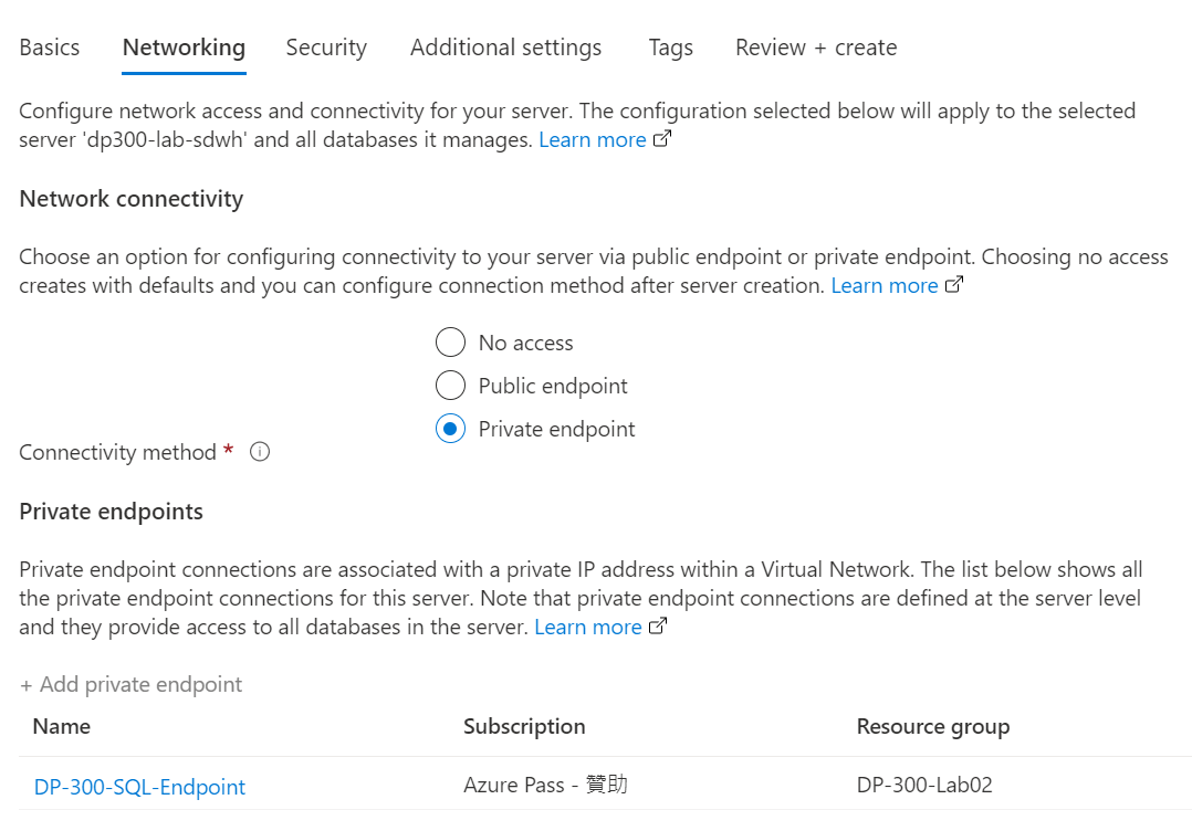 建立的過程,我們除了 Azure SQL Database 還需要建立三個資源,分別是 SQL Server、Compute + Storage 以及 Endpoint。