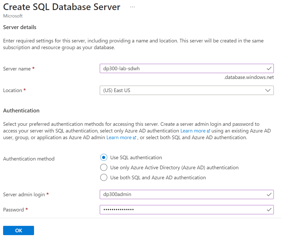 首先建立 SQL Server,這個 SQL Server 可以在多個 Azure SQL Database 之間共用,建立的過程須設定連線的驗證方式。