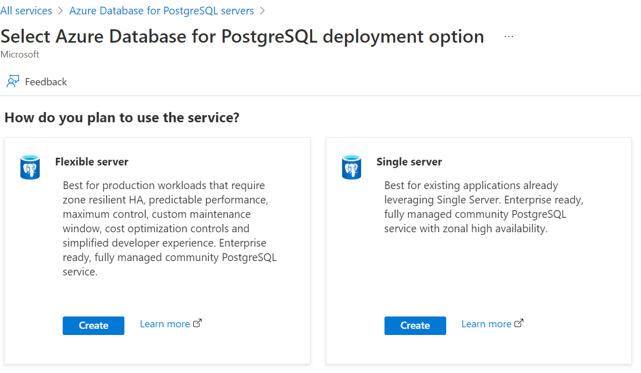 除了 SQL Database 外,我們也可以建立 PostgreSQL Database。