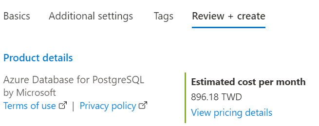 PostgreSQL Database 沒有 DTU 的 Server 計價模式,最便宜的每月成本約需 900 元,較 DTU 計算的 Azure SQL Database 150元 來得高出許多 😯
