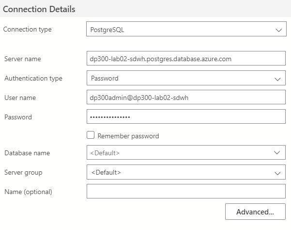 要連線 PostgreSQL 所要使用的 Connection Type、ServerName 以及 UserName 方式都與 Azure SQL Database 有所不同。
