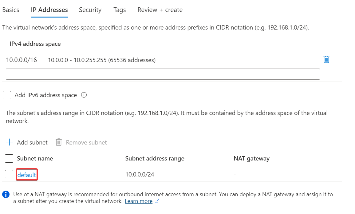接著在 IP Address 選擇 subnet 的 default 進行設定