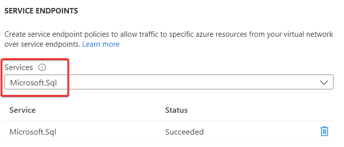 將 Service Endpoints 加入 Microsoft.Sql Service