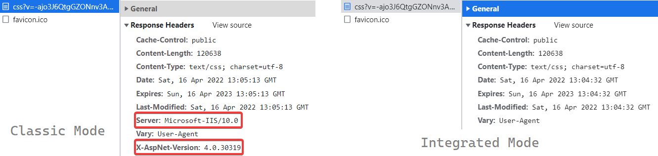 參考 如何理解IIS 7的兩種應用程序池的管道模式(Managed Pipeline Mode) 是在 Response Content 加入內容,調整為移除 IIS 暴露出來的伺服器資源。