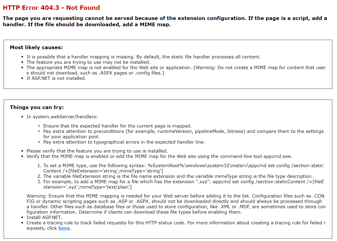 另外又興起一個疑問如何判斷副檔名的註冊與否?從保哥的案例可以知道 .php 肯定是屬於未註冊的副檔名,而註冊的方法是透過在 web.config 中加入 Handler,需要加入的包括