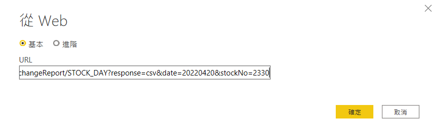 首先從 Power BI 取得資料選擇 web 並輸入 URL