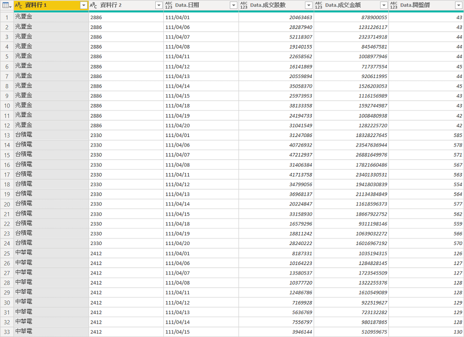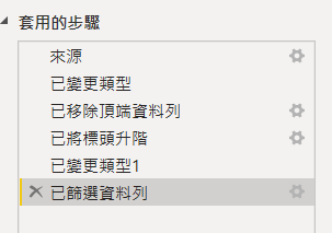 我們在查詢的步驟依序加入移除頂端資料列、標頭升階以及篩選資料等動作,清洗資料 😏