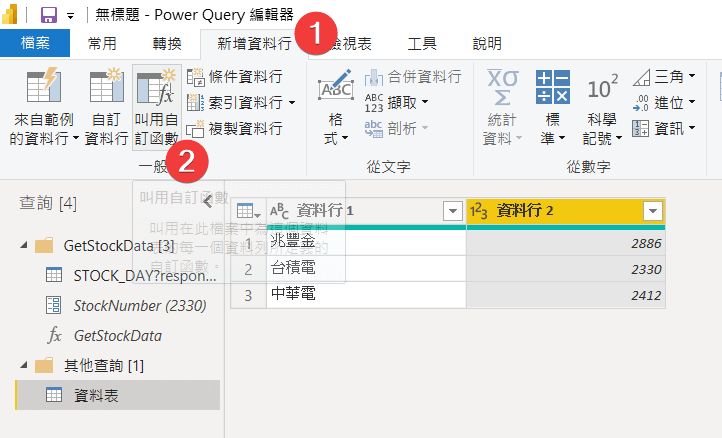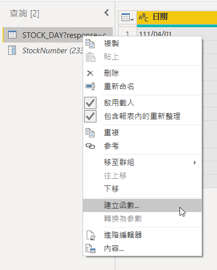 完成後,我們對目前載入資料的查詢,選擇 建立函數