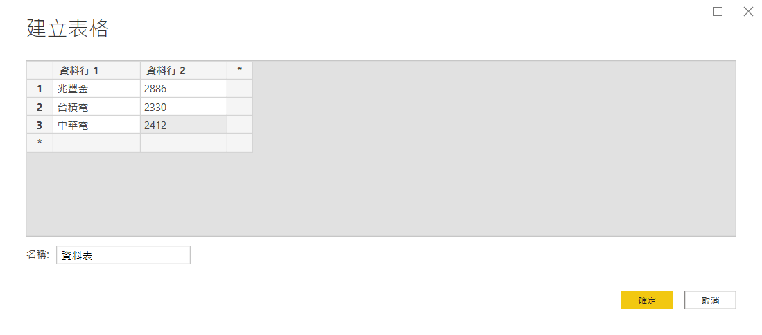 完成函數建立後,接著手動建立幾筆測試資料,我們要藉由函數的功能來批次載入資料。