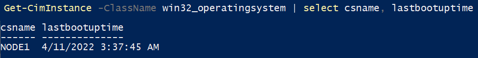 Get-CimInstance -ClassName win32_operatingsystem | select csname, lastbootuptime