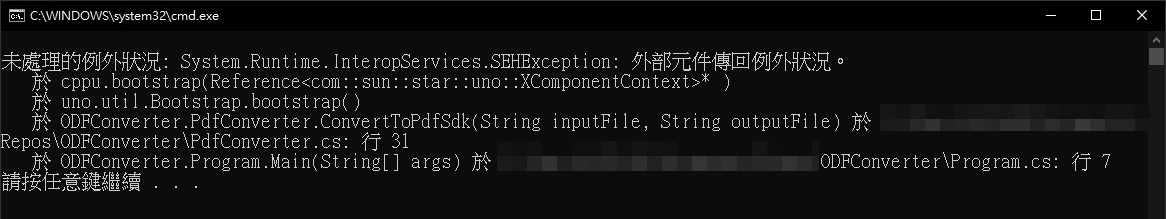 未處理的例外狀況: System.Runtime.InteropServices.SEHException: 外部元件傳回例外狀況。